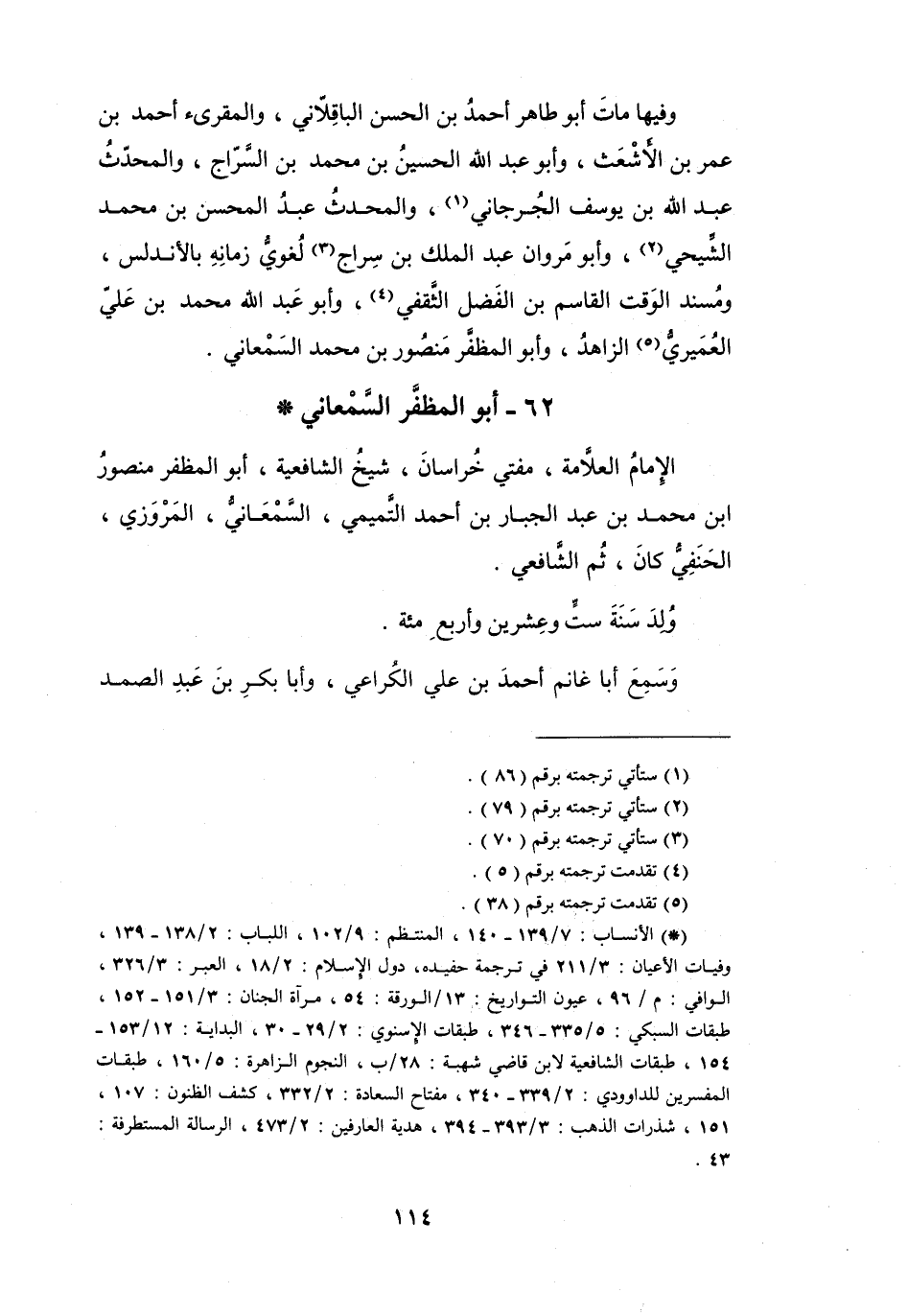 62 - أَبُو المُظَفَّرِ السَّمْعَانِيُّ مَنْصُوْرُ بنُ مُحَمَّدِ بنِ عَبْدِ الجَبَّارِ *
