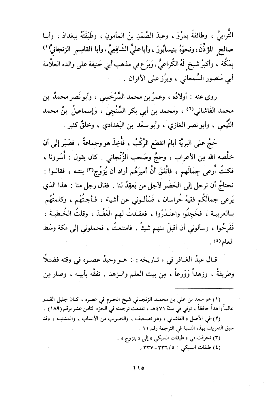 (1) هو سعد بن علي بن محمد الزنجاني شيخ الحرم في عصره، كان جليل القدر عالما زاهدا حافظا، توفي في سنة 471 هـ، تقدمت ترجمته في الجزء الثامن عشر برقم (189) .