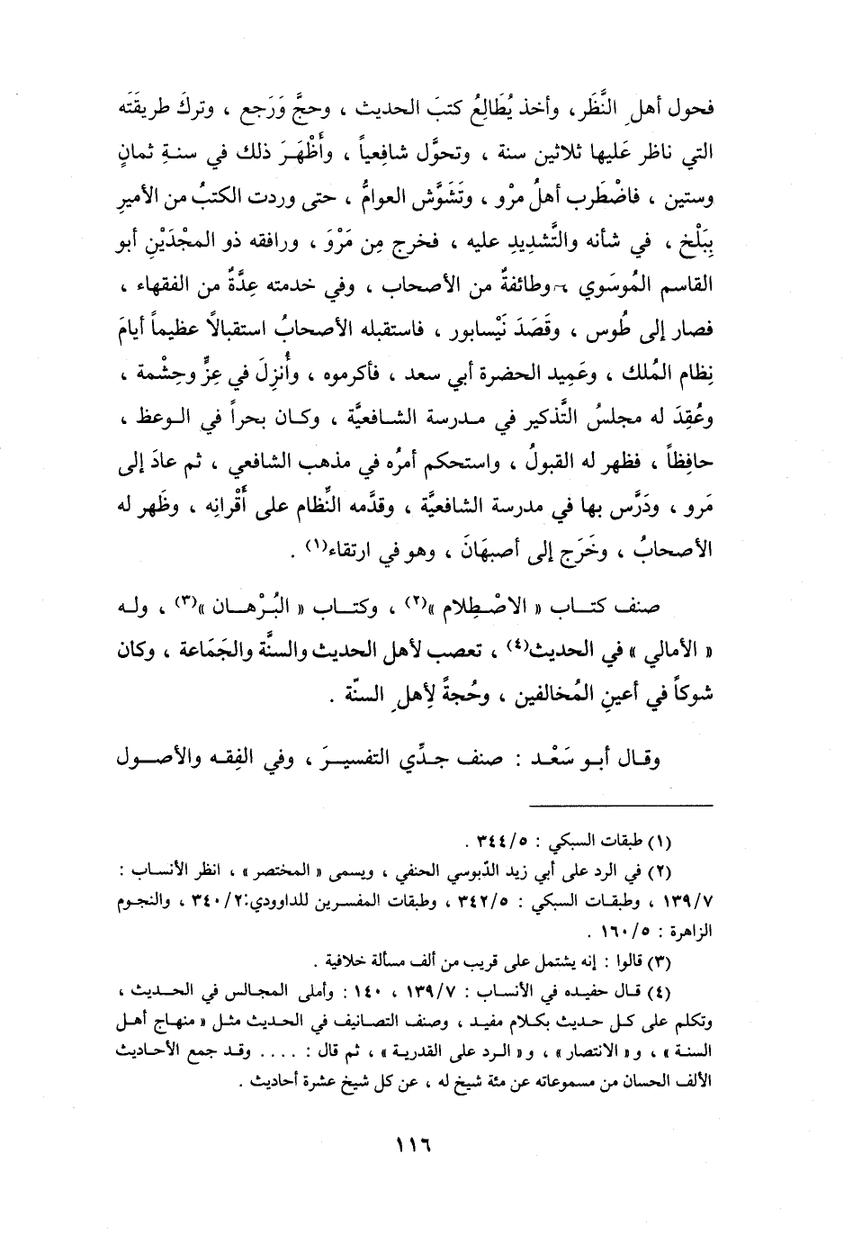 (2) في الرد على أبي زيد الدبوسي الحنفي، ويسمى (المختصر) ، انظر الأنساب: 7 / 139، وطبقات السبكي: 5 / 342، وطبقات المفسرين للداوودي: 2 / 340، والنجوم الزهرة: 160 / 5.
