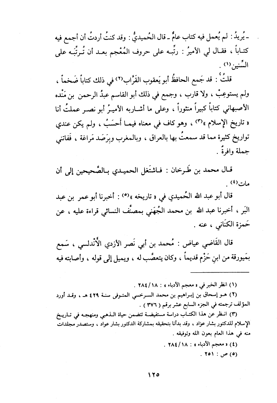 (3) انظر عن هذا الكتاب دراسة مستفيضة تتضمن حياة الذهبي ومنهجه في تاريخ الإسلام للدكتور بشار عواد، وقد بدأنا بتحقيقه بمشاركة الدكتور بشار عواد، وستصدر مجلدات منه في هذا العام بعون الله وتوفيقه.