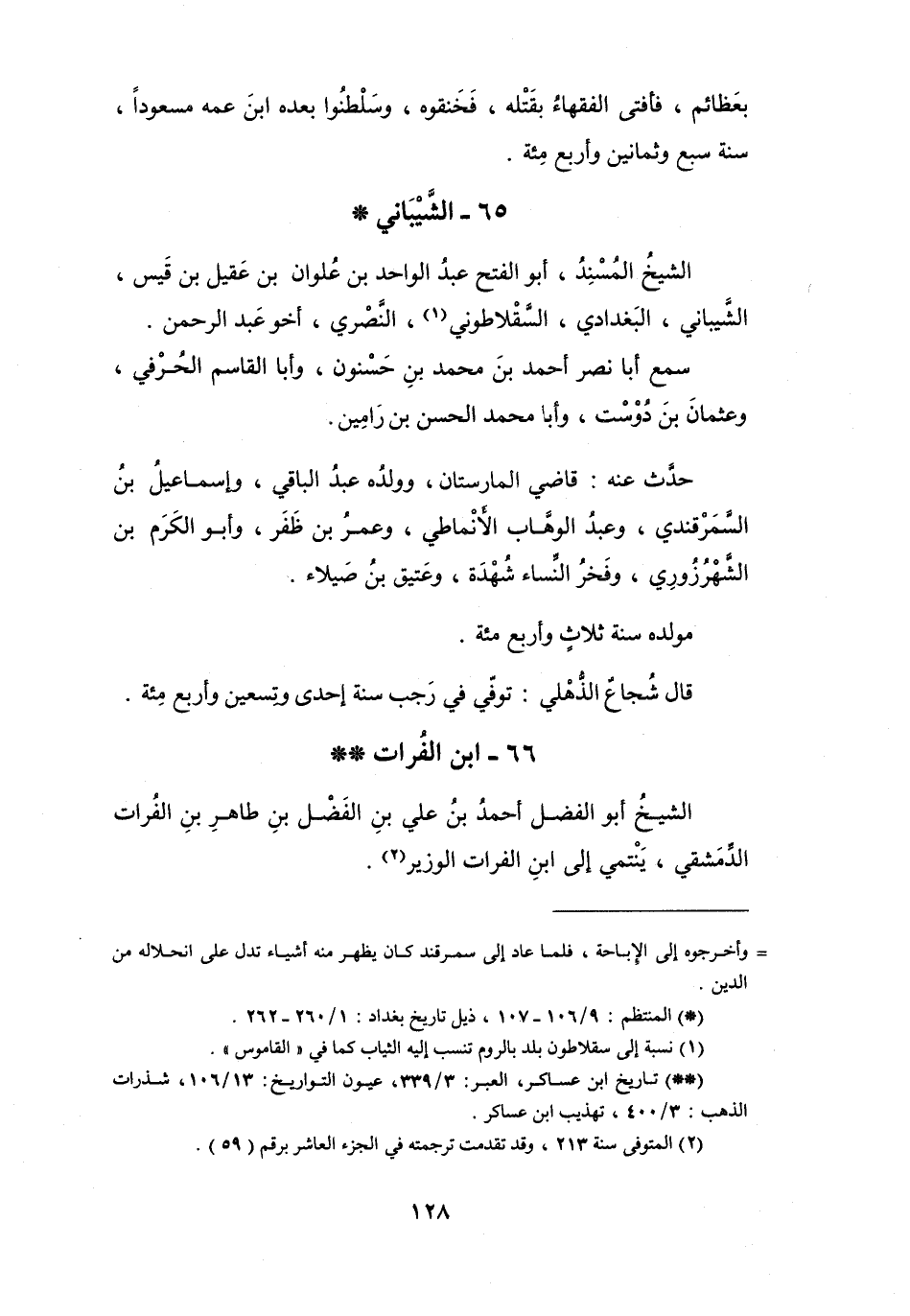 (*) المنتظم: 9 / 106 - 107، ذيل تاريخ بغداد: 1 / 260 - 262.