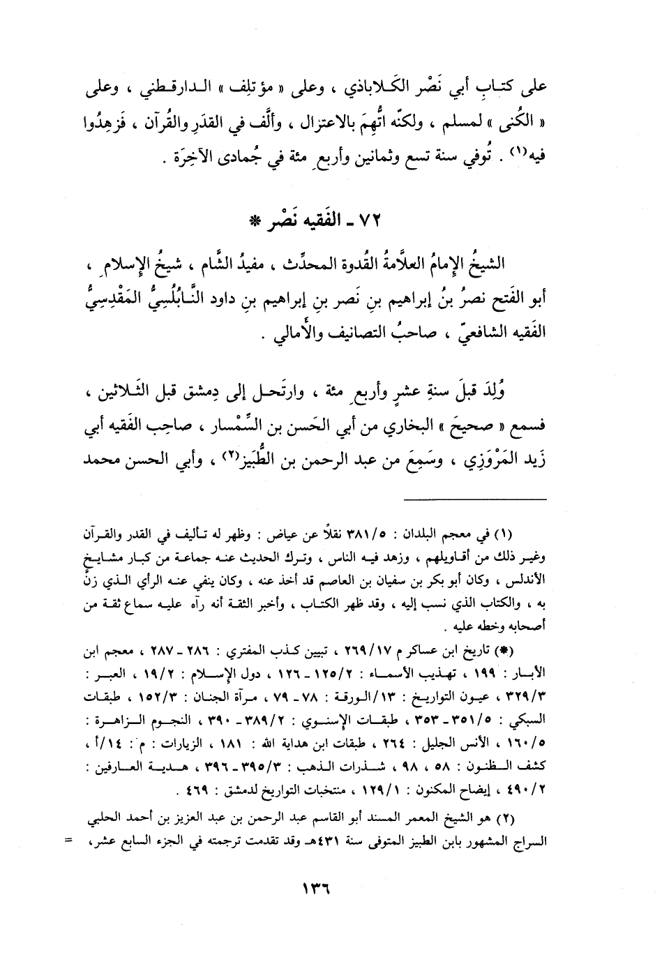 72 - الفَقِيْهُ نَصْرٌ أَبُو الفَتْحِ بنُ إِبْرَاهِيْمَ بنِ نَصْرٍ النَّابُلُسِيُّ *