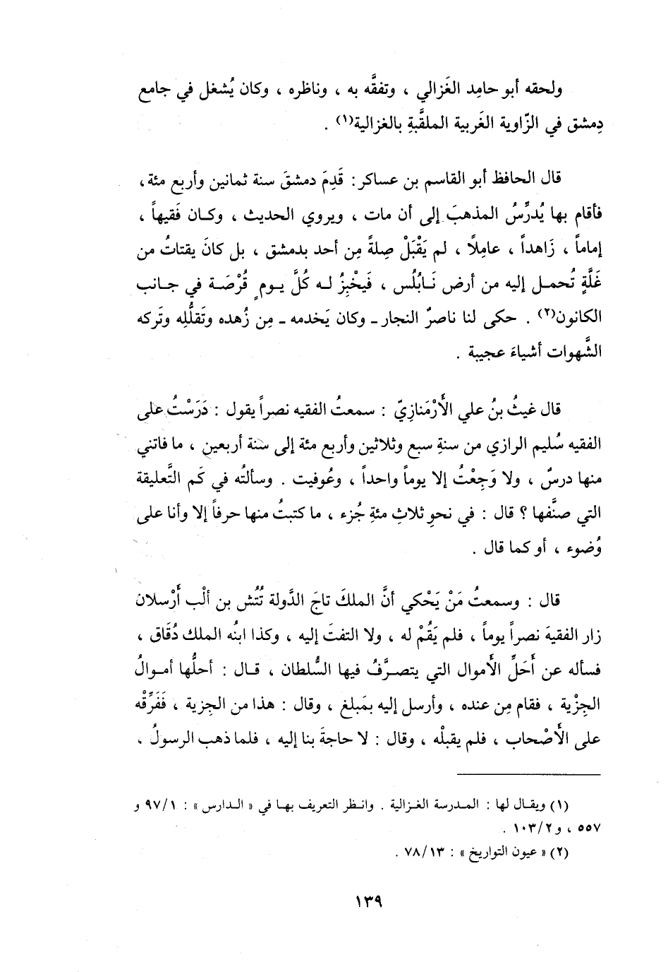 (1) ويقال لها: المدرسة الغزالية. انظر التعريف بها في " الدارس ": 1 / 97 و557، و2 / 103.