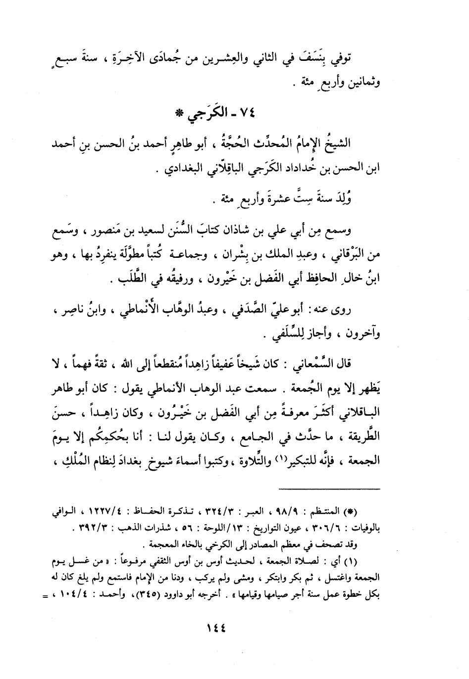 74 - الكَرَجِيُّ أَبُو طَاهِرٍ أَحْمَدُ بنُ الحَسَنِ بنِ أَحْمَدَ *
