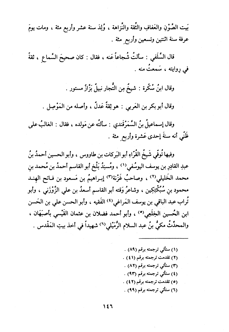 وَفِيْهَا تُوُفِّيَ: شَيْخُ القُرَّاءِ أَبُو البَرَكَات بن طَاوُوْس، وَأَبُو الحُسَيْنِ أَحْمَدُ بنُ عبدِ القاَدِرِ بن يُوْسُفَ اليُوسُفِي (1) ، وَمُسْنِدُ بَلْخ أَبُو القَاسِمِ أَحْمَدُ بنُ مُحَمَّدِ بنِ مُحَمَّدٍ الخَلِيْلِي (2) ، وَصَاحِبُ غَزْنَة (3) إِبْرَاهِيْمُ بن مَسْعُوْدِ بنِ فَاتِح الهِنْد مَحْمُوْد بن سُبُكْتِكِين، وَشَاعِرُ وَقته أَبُو القَاسِمِ أَسَعْدُ بن عَلِيٍّ الزَّوْزَنِي، وَأَبُو تُرَاب عبد البَاقِي بن يُوْسُفَ المَرَاغِيّ (4) الفَقِيْه، وَأَبُو الحَسَنِ عَلِيُّ بنُ الحَسَنِ بنِ الحُسَيْنِ الخِلَعِي (5) ، وَأَبُو أَحْمَدَ فَضلاَن بن عُثْمَانَ القَيْسِيّ بِأَصْبَهَانَ، وَالمُحَدِّثُ مَكِّيُّ بنُ عَبْد السَّلاَمِ الرُّمَيْلِي (6) شهيداً فِي أَخْذِ بَيْت المَقْدِسِ.