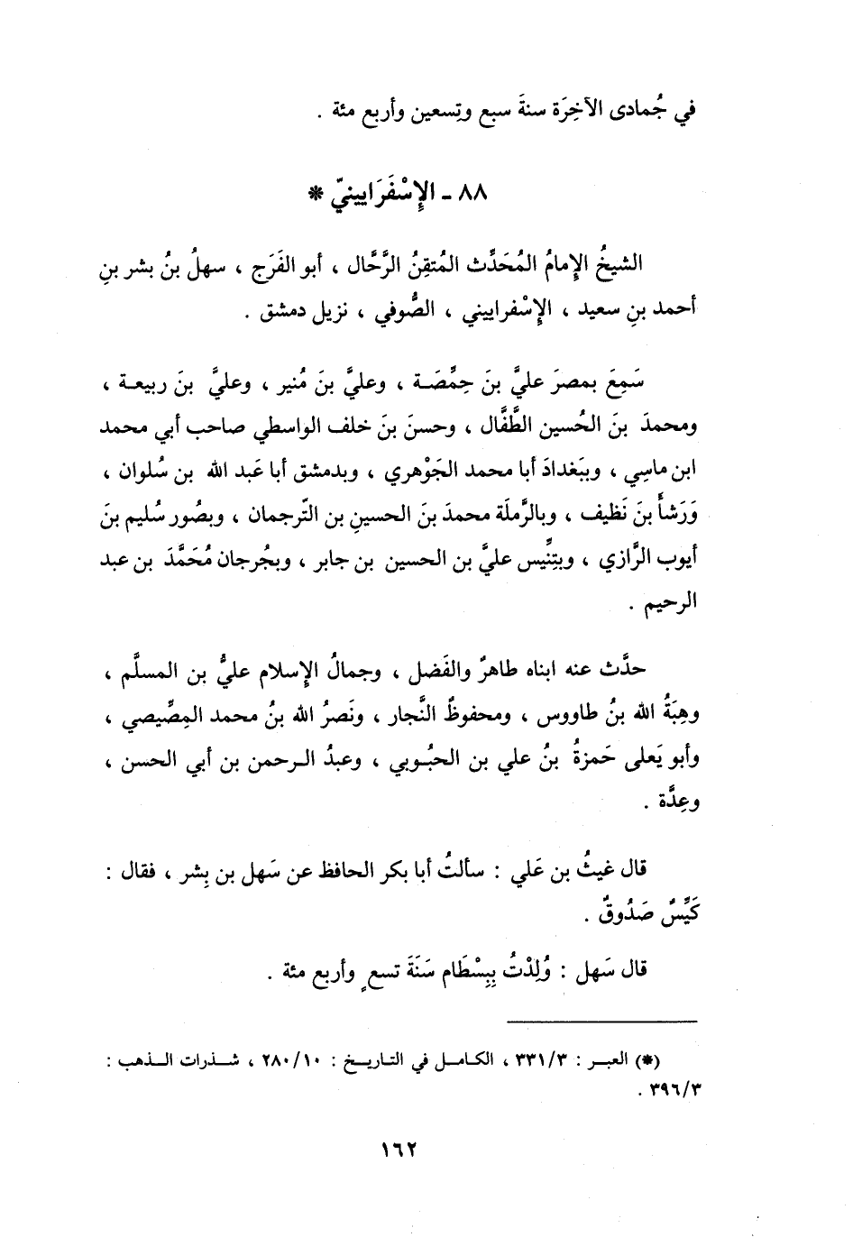 88 - الإِسْفَرَايينِيُّ أَبُو الفَرَجِ سَهْلُ بنُ بِشْرِ بن أَحْمَدَ *