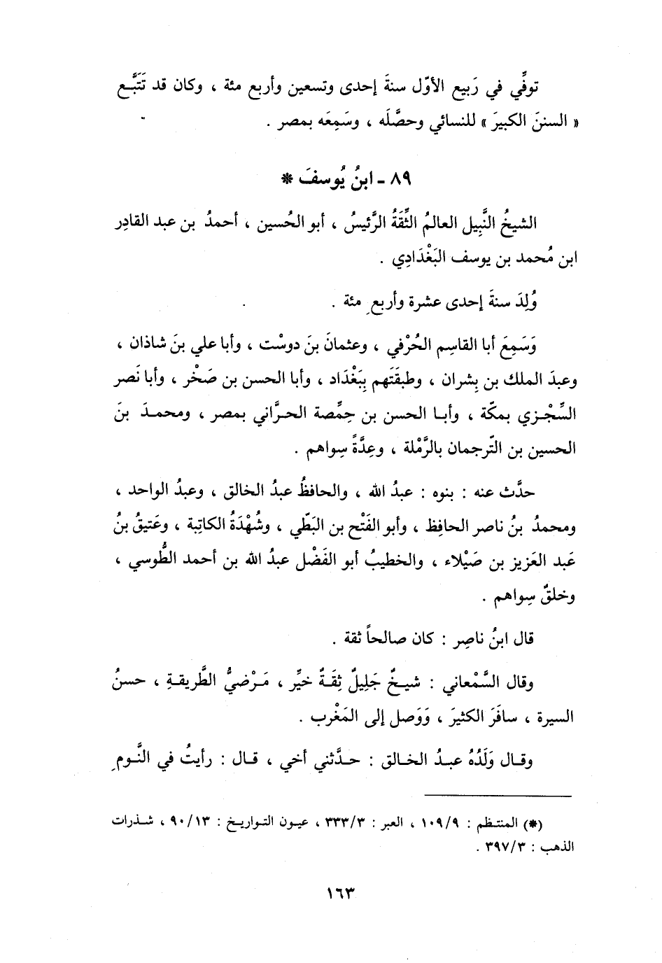 89 - ابْنُ يُوْسُفَ أَبُو الحُسَيْنِ أَحْمَدُ بنُ عَبْدِ القَادِرِ البَغْدَادِيُّ *