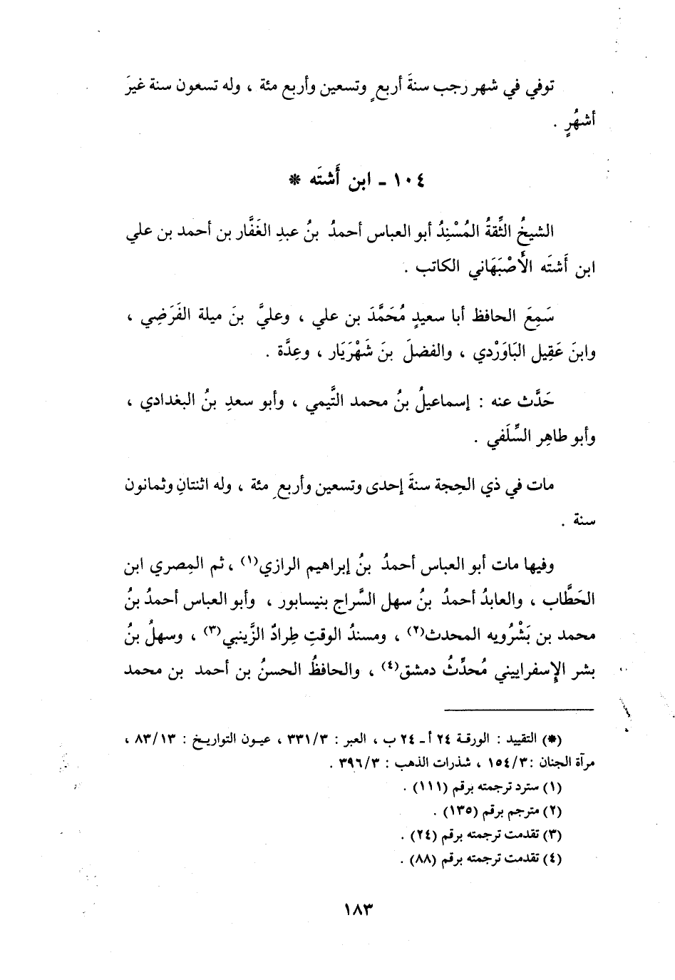 104 - ابْنُ أَشتَه أَبُو العَبَّاسِ أَحْمَدُ بنُ عَبْدِ الغَفَّارِ بنِ أَحْمَدَ *