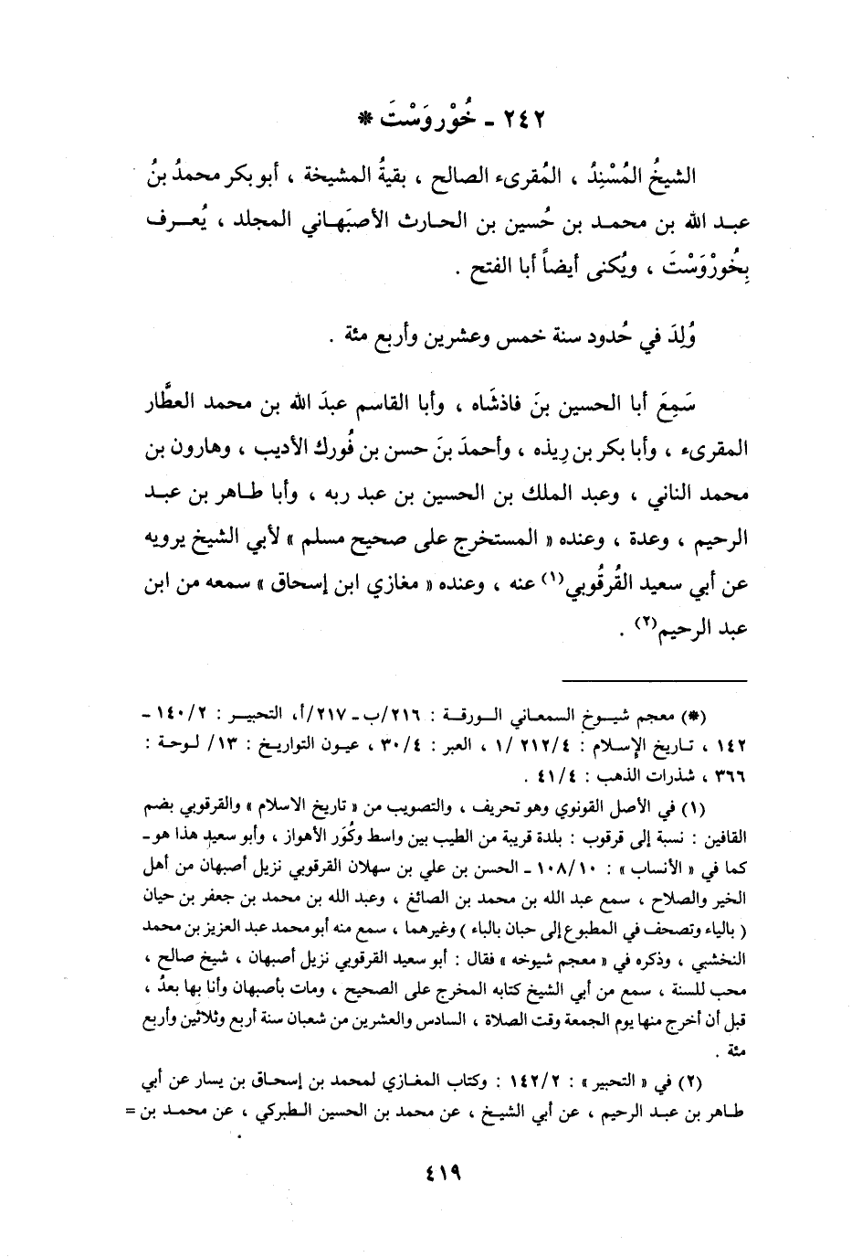 242 - خُوْروَسْتَ أَبُو بَكْرٍ مُحَمَّدُ بنُ عَبْدِ اللهِ بنِ مُحَمَّدٍ *
