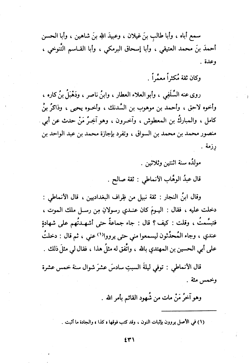 وَهُوَ آخِرُ مَنْ مَاتَ مِنْ شُهُودِ القَائِمِ بِأَمرِ اللهِ.