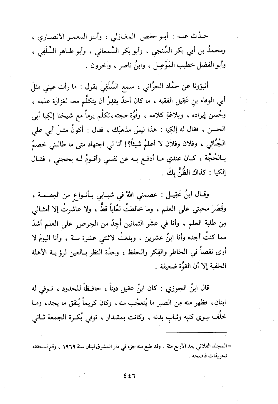 = المجلد الفلاني بعد الأربع مئة. وقد طبع منه جزء في دار المشرق لبنان سنة 1969، وقع لمحققه تحريفات فاضحة.