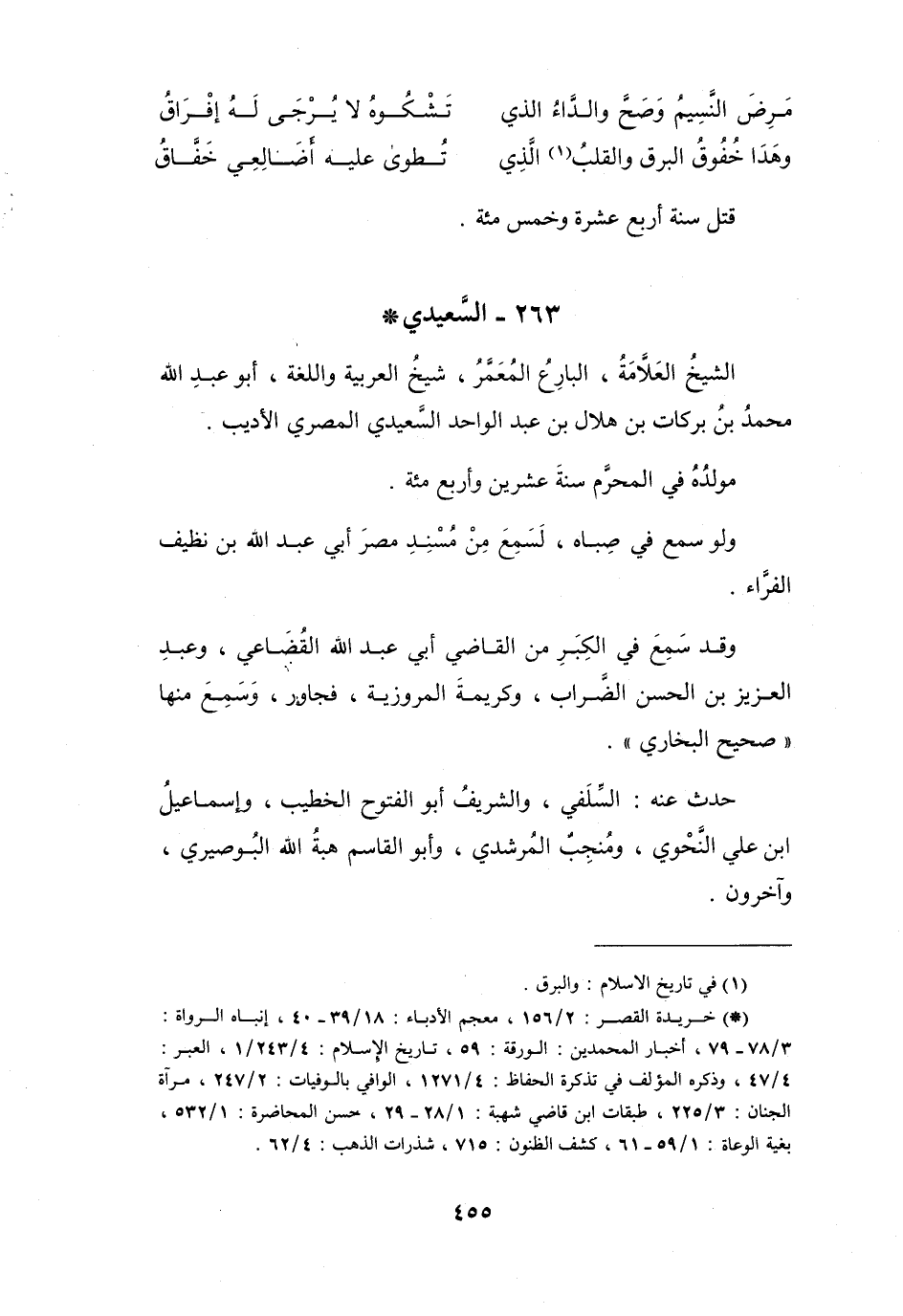 263 - السَّعِيْدِيُّ أَبُو عَبْدِ اللهِ مُحَمَّدُ بنُ بَرَكَاتِ بنِ هِلاَلٍ *