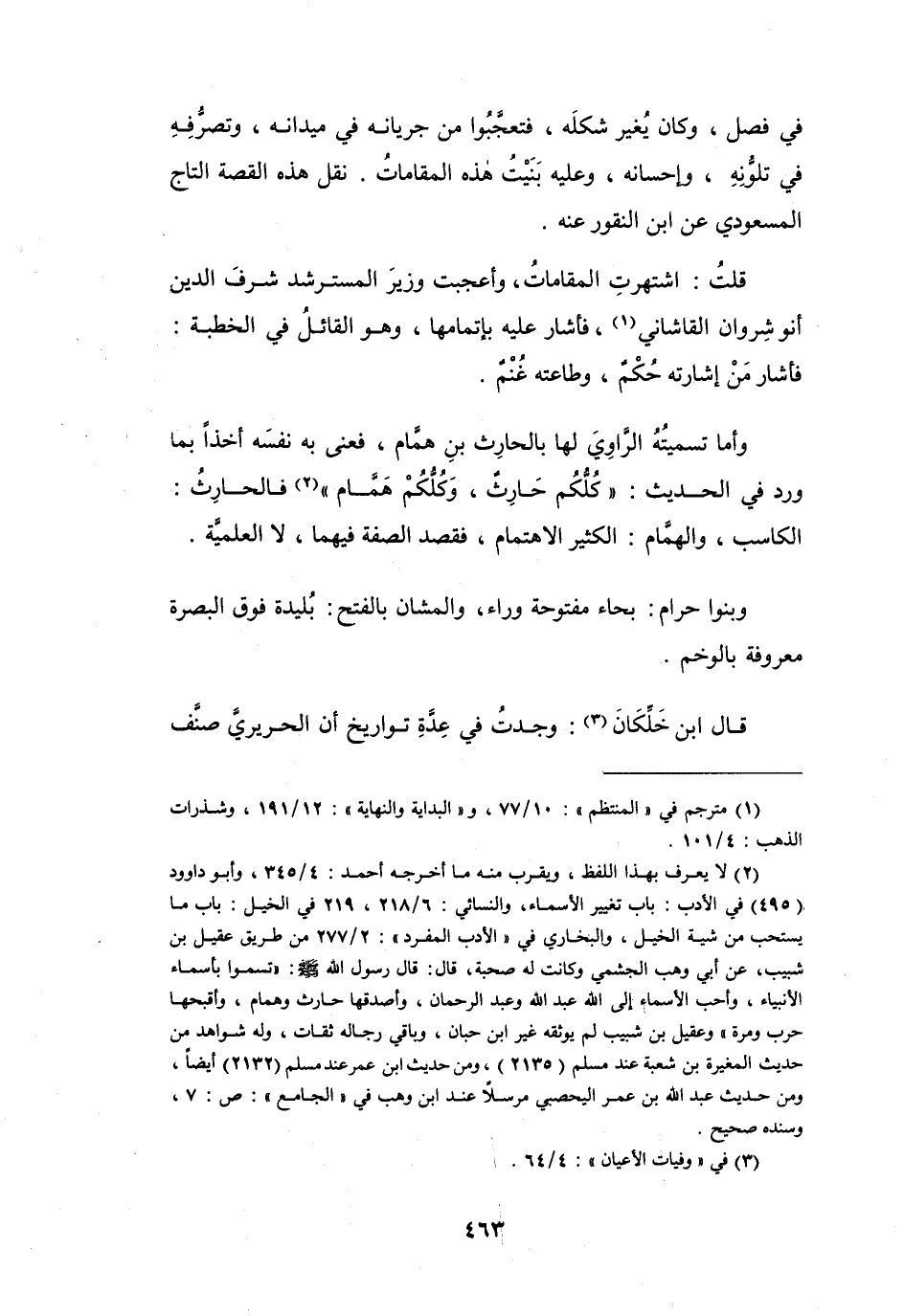 قَالَ ابْنُ خَلِّكَان (3) :وَجَدْت فِي عِدَّة تَوَارِيخَ أَنَّ الحَرِيْرِيَّ صَنَّفَ