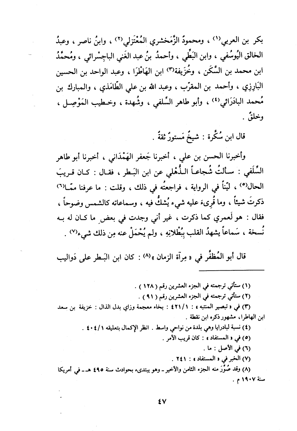 (8) وقد صور منه الجزء الثامن والاخير - وهو يبتدئ بحوادث سنة 495 هـ - في أمريكا سنة 1907 م.
