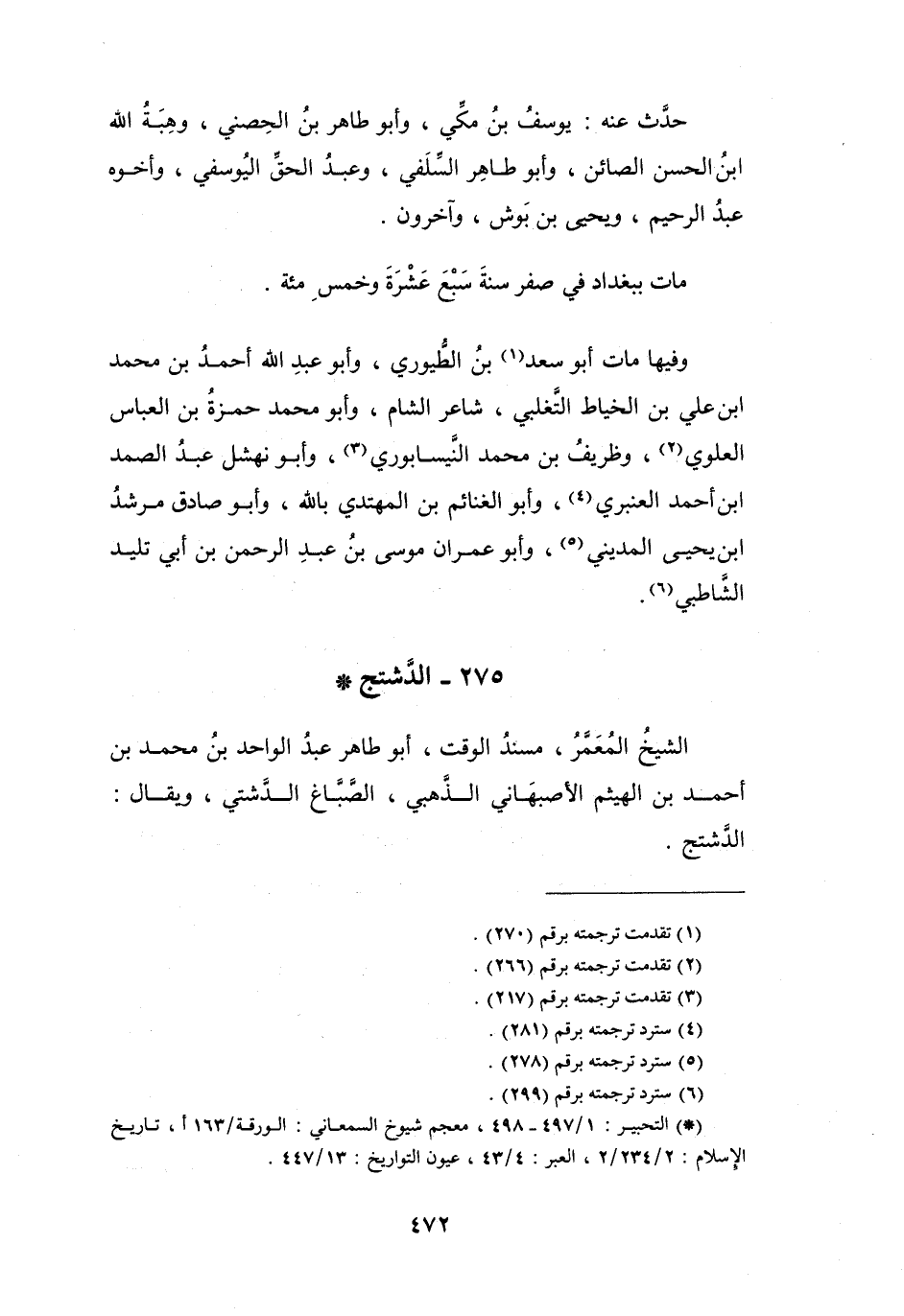 275 - الدَّشتجُ أَبُو طَاهِرٍ عَبْدُ الوَاحِدِ بنُ مُحَمَّدِ بنِ أَحْمَدَ *