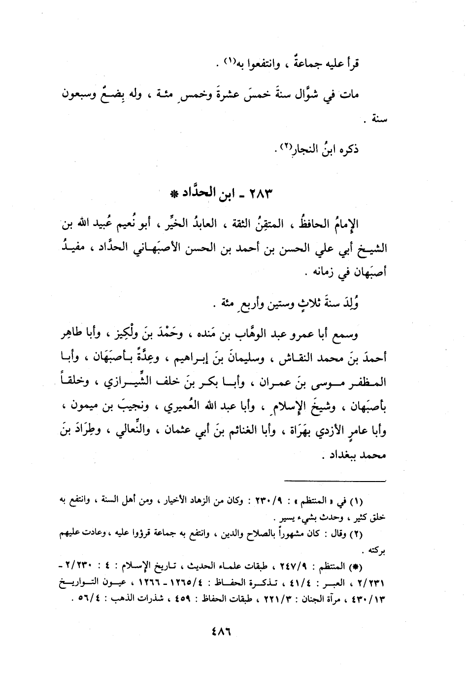 الإِمَامُ، الحَافِظُ المُتْقِنُ، الثِّقَةُ، العَابِدُ، الخَيِّرُ، أَبُو نُعَيْمٍ عُبَيْد اللهِ ابْن الشَّيْخ أَبِي عَلِيٍّ الحَسَن بن أَحْمَدَ بنِ الحَسَنِ الأَصْبَهَانِيّ، الحَدَّاد، مفِيدُ أَصْبَهَان فِي زَمَانِهِ.