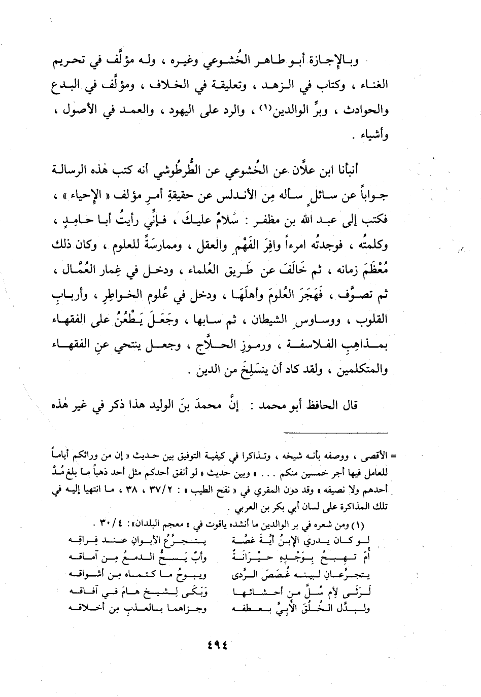 (1) ومن شعره في بر الوالدين ما أنشده ياقوت في " معجم البلدان ": 4 / 30.
