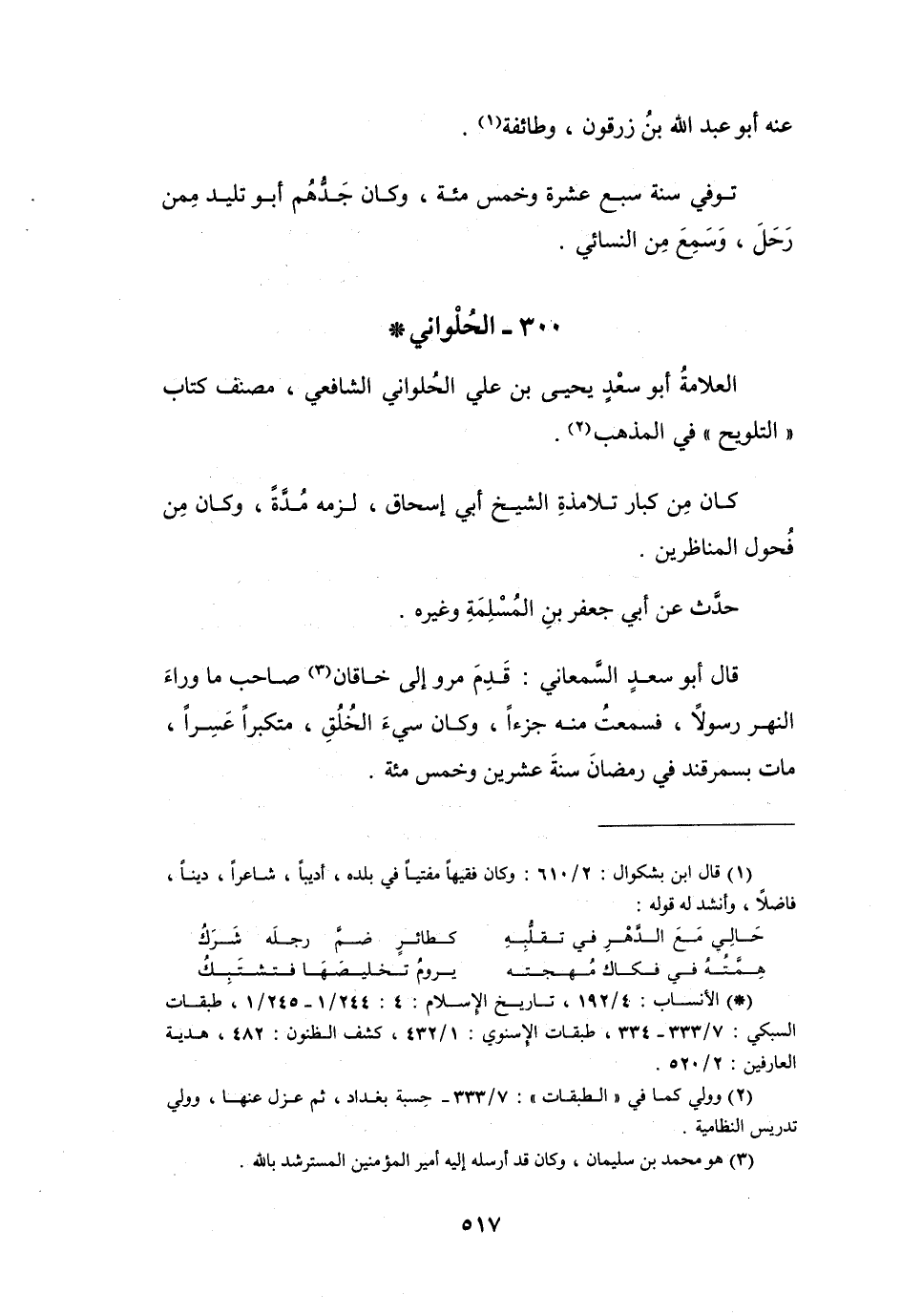 300 - الحُلْوَانِيُّ أَبُو سَعْدٍ يَحْيَى بنُ عَلِيٍّ *