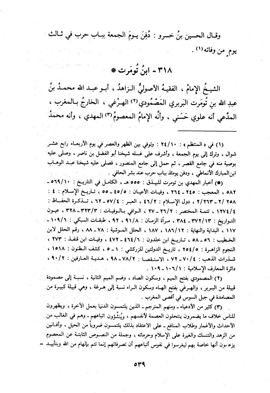 318 - ابْنُ تُوْمَرتَ أَبُو عَبْدِ اللهِ مُحَمَّدُ بنُ عَبْدِ اللهِ *