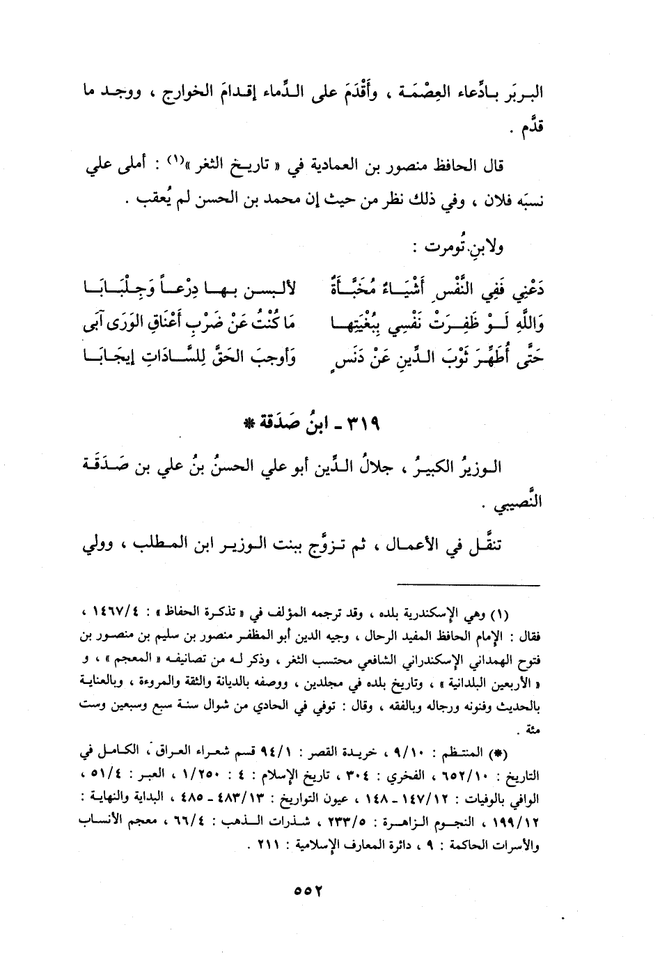 (*) المنتظم: 10 / 9، خريدة القصر: 1 / 94 قسم شعراء العراق، الكامل في التاريخ: 10 / 652، الفخري: 304، تاريخ الإسلام: 4: 250 / 1، العبر: 4 / 51، الوافي بالوفيات: 12 / 147 - 148، عيون التواريخ: 13 / 483 - 485، البداية والنهاية: 12 / 199، النجوم الزاهرة: 5 / 233، شذرات الذهب: 4 / 66، معجم الأنساب والاسرات الحاكمة: 9، دائرة المعارف الإسلامية: 211.
