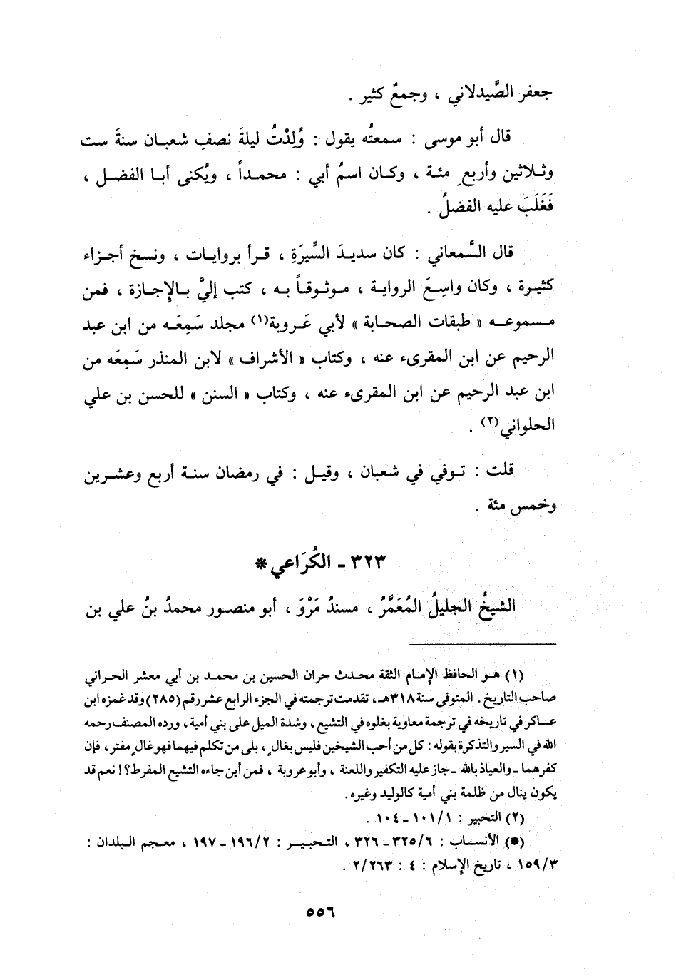 (*) الأنساب: 6 / 325 - 326، التحبير: 2 / 196 - 197، معجم البلدان: 3 / 159، تاريخ الإسلام: 4: 263 / 2.