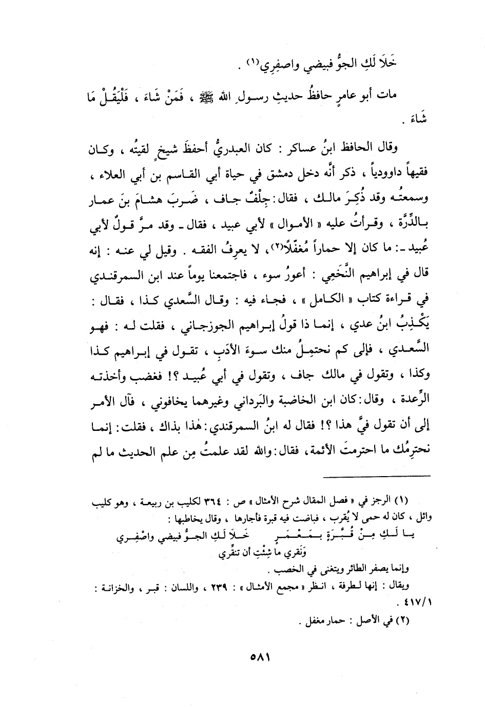 مَاتَ أَبُو عَامِرٍ حَافظُ حَدِيْثِ رَسُوْل اللهِ - صَلَّى اللَّهُ عَلَيْهِ وَسَلَّمَ - فَمَنْ شَاءَ، فَلْيَقُلْ مَا شَاءَ.