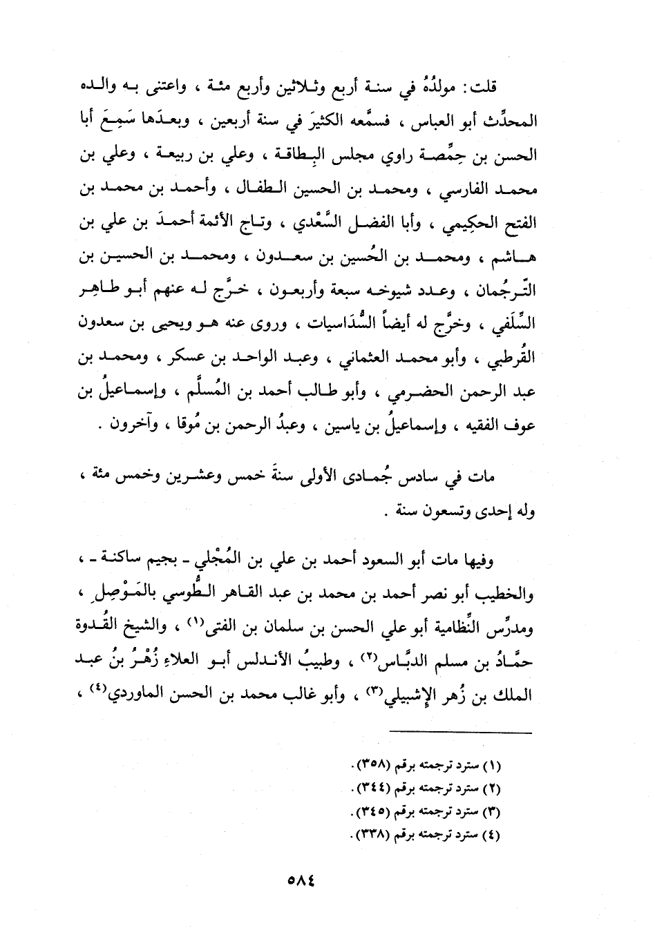 قُلْتُ: مَوْلِدُهُ فِي سَنَةِ أَرْبَعٍ وَثَلاَثِيْنَ وَأَرْبَعِ مائَةٍ.