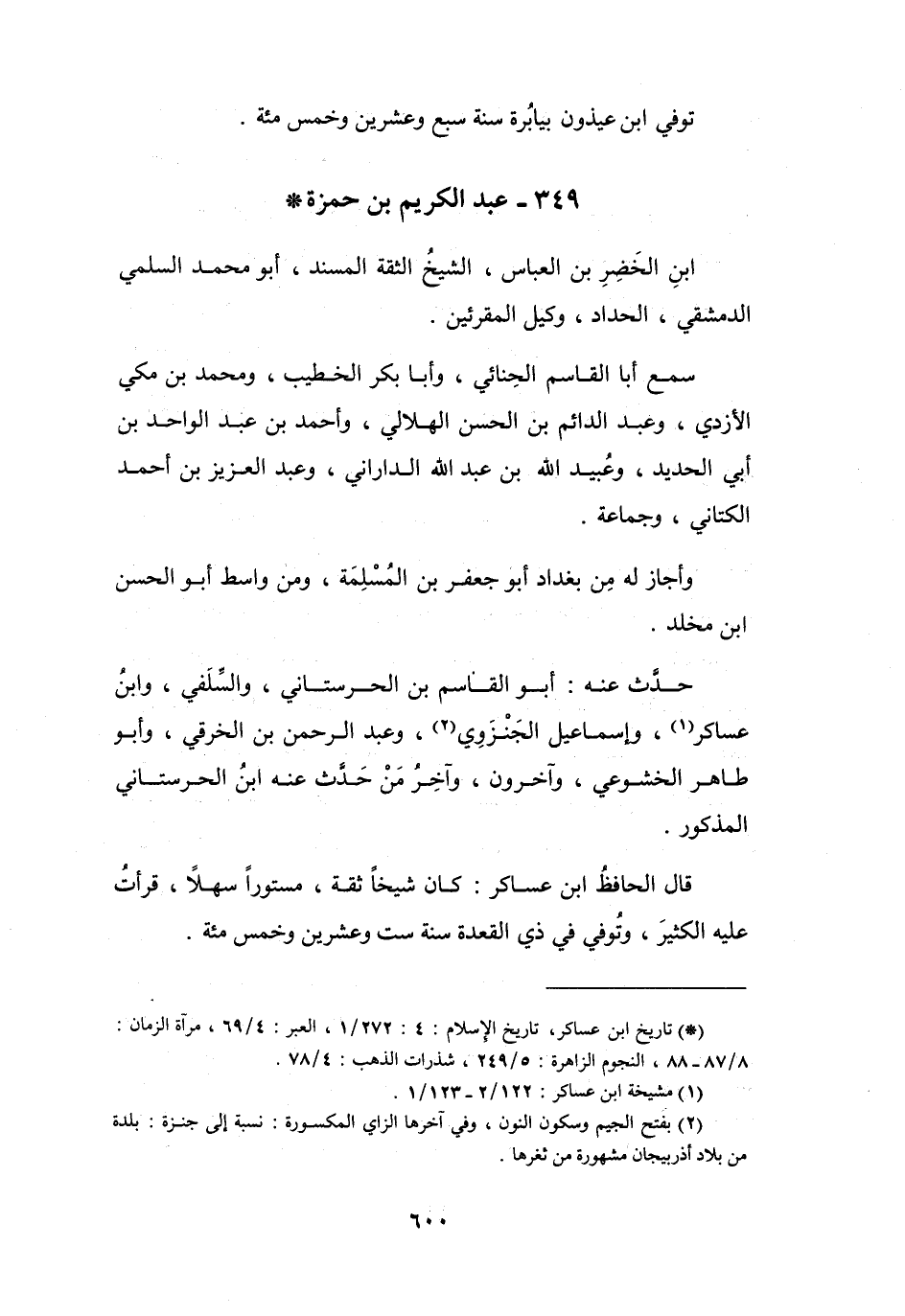 349 - عَبْدُ الكَرِيْمِ بنُ حَمْزَةَ بن الخَضِرِ بن العَبَّاسِ *
