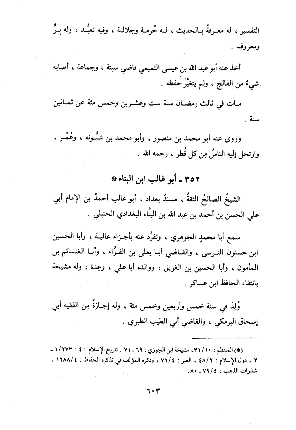 (*) المنتظم: 10 / 31، مشيخة ابن الجوزي: 69 - 71، تاريخ الإسلام: 4: 273 / 1 - 2، دول الإسلام: 2 / 48، العبر: 4 / 71، وذكره المؤلف في تذكره الحفاظ: 4 / 1288، شذرات الذهب: 4 / 79 - 80.