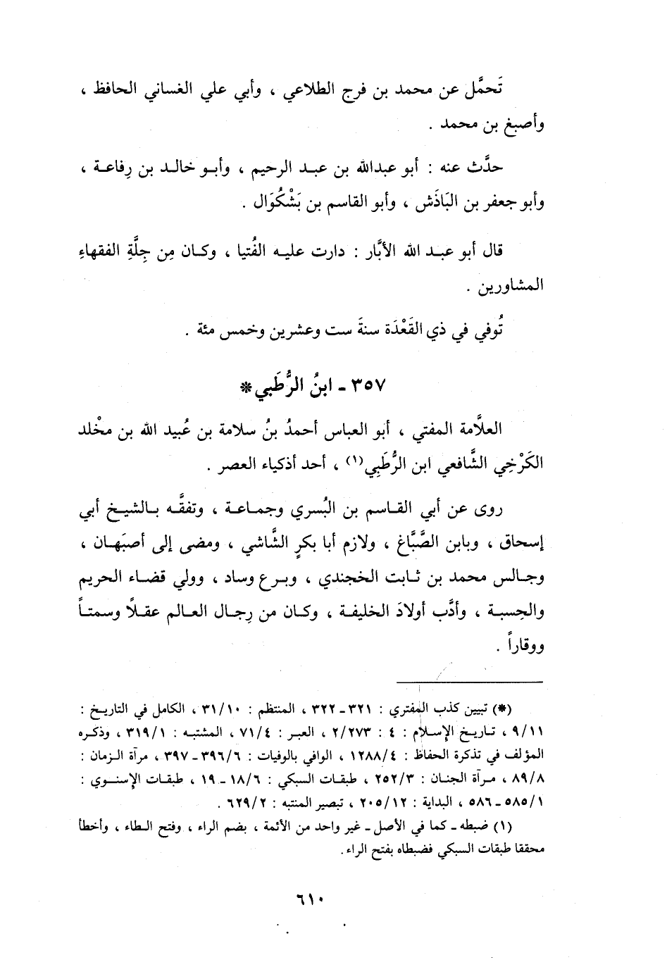 357 - ابْنُ الرُّطَبِي أَبُو العَبَّاسِ أَحْمَدُ بنُ سَلاَمَةَ بن عُبَيْدِ اللهِ *