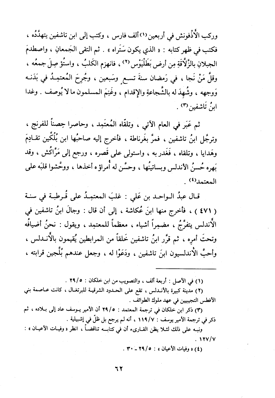 (3) ذكر ابن خلكان في ترجمة المعتمد: 5 / 29 أن الأمير يوسف عاد إلى بلاده، ثم ذكر في ترجمة الأمير يوسف: 7 / 119، أنه لم يرجع بل ظل في إشبيلية. ونبه على ذلك لئلا يظن القارئ أن في كتابه تناقضا، انظر " وفيات الأعيان ": 7 / 127.