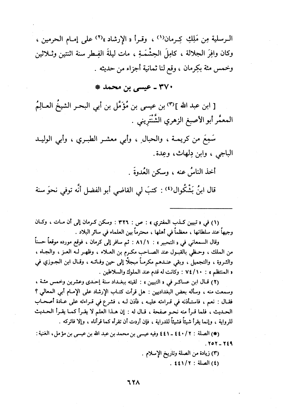 (*) الصلة: 2 / 440 - 441 وفيه عيسى بن محمد بن عبد الله بن عيسى بن مؤمل، الغنية: 249 - 252.