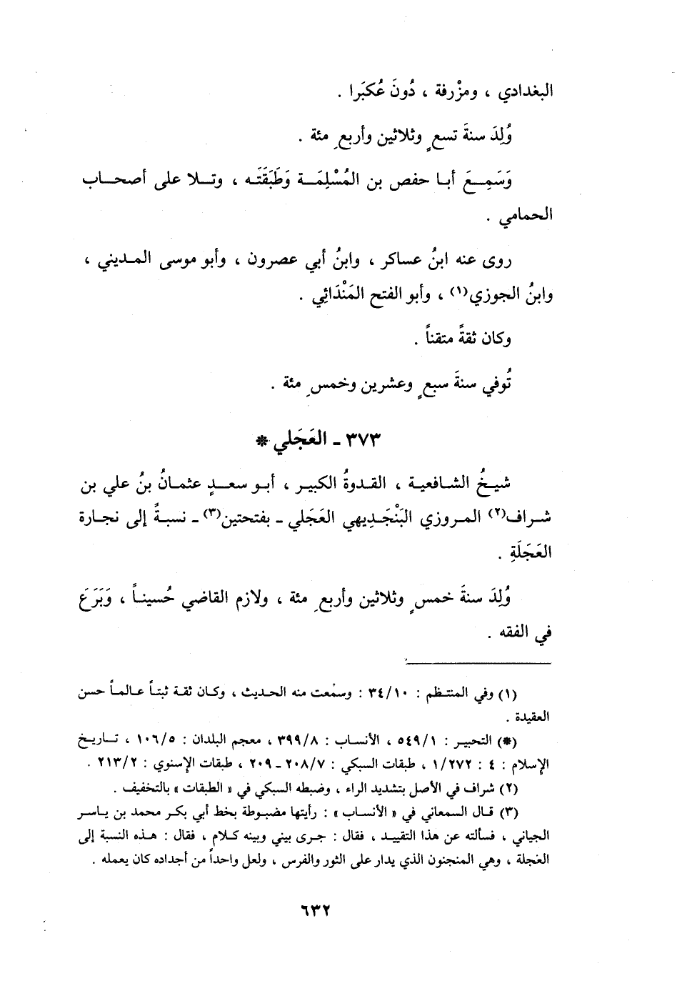 373 - العَجَلِيُّ أَبُو سَعْدٍ عُثْمَانُ بنُ عَلِيِّ بنِ شرَافٍ *