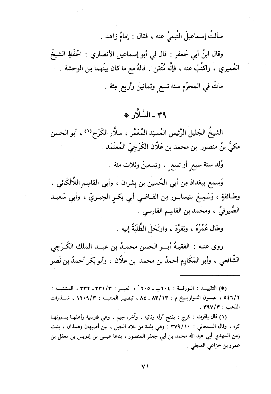الشَّيْخُ الجَلِيْلُ، الرَّئِيْسُ، المُسْنِدُ، المُعَمَّرُ، سَلاَّرُ الكَرَج (1) ، أَبُو الحَسَنِ مَكِّيُّ بنُ مَنْصُوْرِ بنِ مُحَمَّدِ بنِ عَلاَّنَ الكَرَجِيّ، المُعْتَمَدُ.