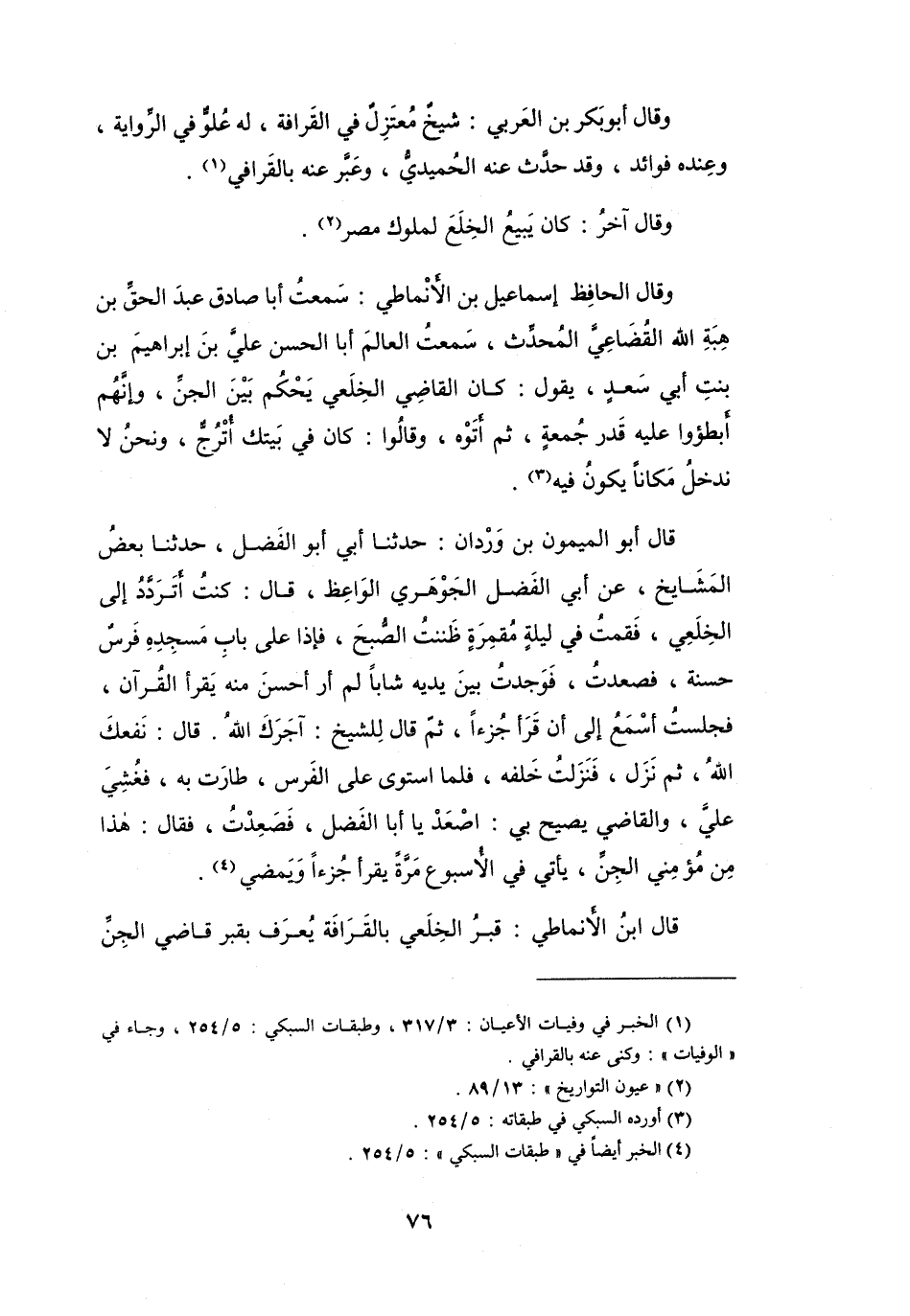 (1) الخبر في وفيات الأعيان: 3 / 317، وطبقات السبكي: 5 / 254، وجاء في " الوفيات ": وكنى عنه بالقرافي.