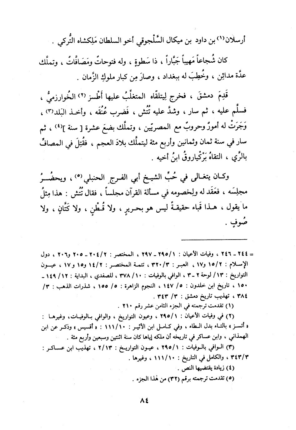 (3) الوافي بالوفيات: 1 / 295، عيون التواريخ: 13 / 2، تهذيب ابن عساكر: 3 / 343، والكامل في التاريخ: 10 / 111، وغيرها.