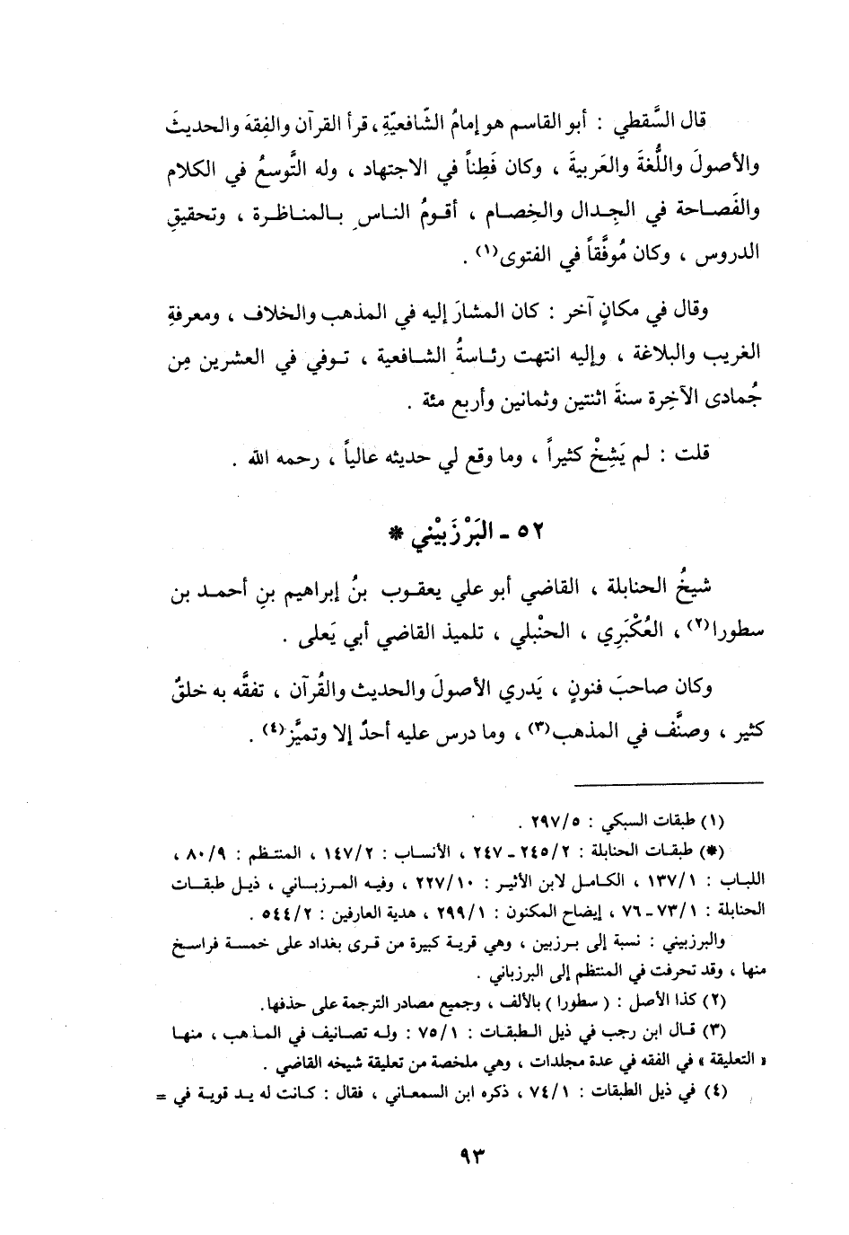 (4) في ذيل الطبقات: 1 / 74، ذكره ابن السمعاني، فقال: كانت له يد قوية في =