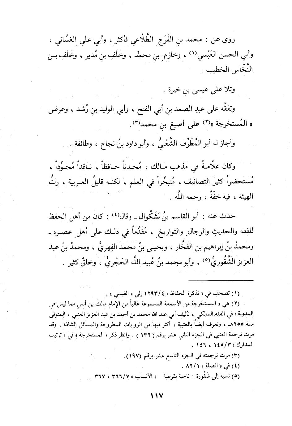 (2) هي " المستخرجة من الاسمعة المسموعة غالبا من الامام مالك بن أنس مما ليس في المدونة " في الفقه المالكي، تأليف أبي عبد الله محمد بن أحمد بن عبد العزيز العتبي، المتوفى سنة 255 هـ، وتعرف أيضا بالعتبية، أكثر فيها من الروايات المطروحة والمسائل الشاذة.