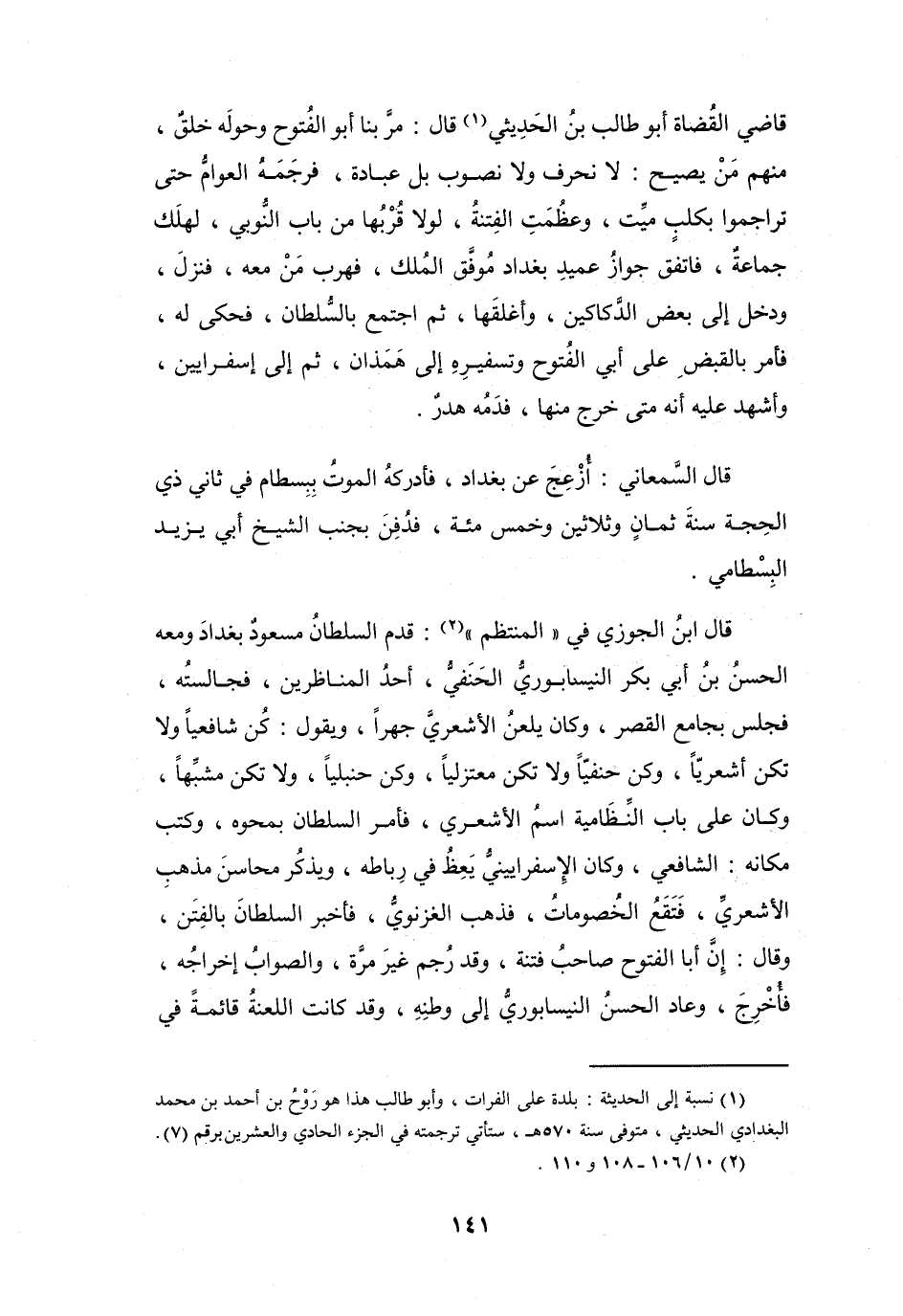 (1) نسبة إلى الحديثة: بلدة على الفرات، وأبو طالب هذا هو روح بن أحمد بن محمد البغدادي الحديثي، متوفى سنة 570 هـ، ستأتي ترجمته في الجزء الحادي والعشرين برقم (7) .