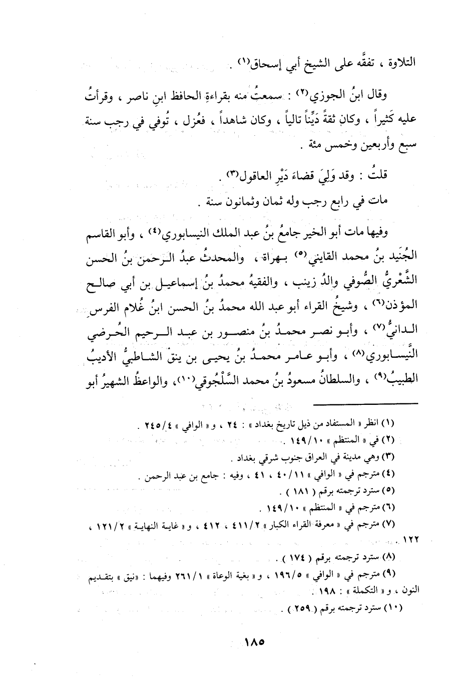 (1) انظر " المستفاد من ذيل تاريخ بغداد ": 24، و" الوافي " 4 / 245.
