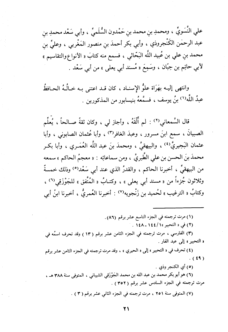(4) تحرف في " التحبير " إلى " الحيري "، وقد مرت ترجمته في الجزء الثامن عشر برقم (49) .