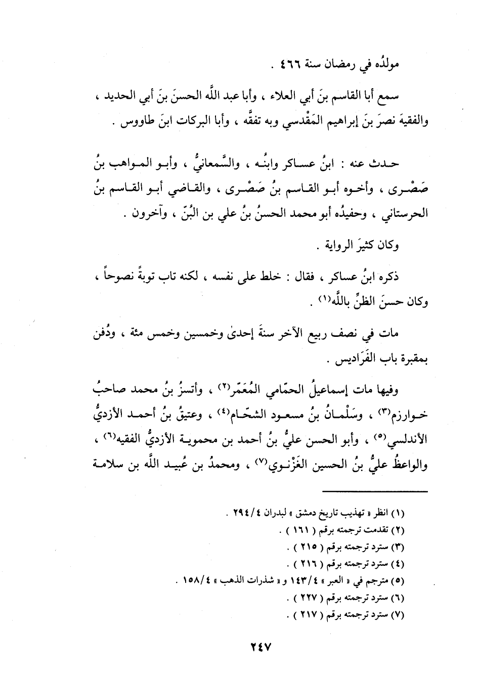 (1) انظر " تهذيب تاريخ دمشق " لبدران 4 / 294.