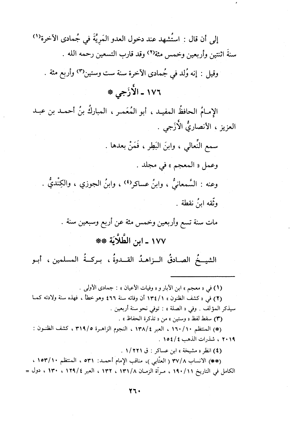 176 - الأَزَجِيُّ أَبُو المُعَمَّرِ المُبَارَكُ بنُ أَحْمَدَ بنِ عَبْدِ العَزِيْزِ *