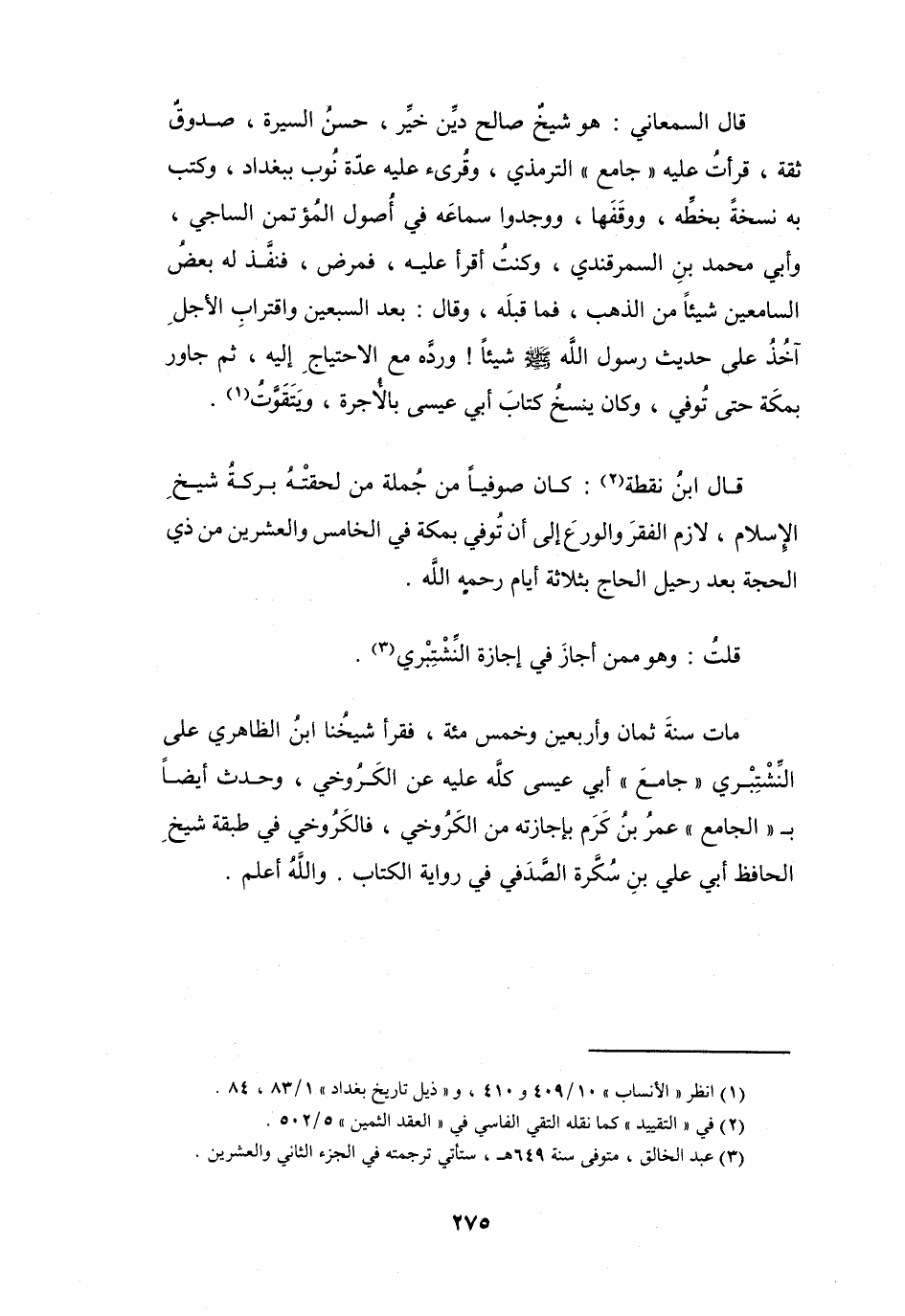 (1) انظر " الأنساب " 10 / 409 و410، و" ذيل تاريخ بغداد " 1 / 83، 84.