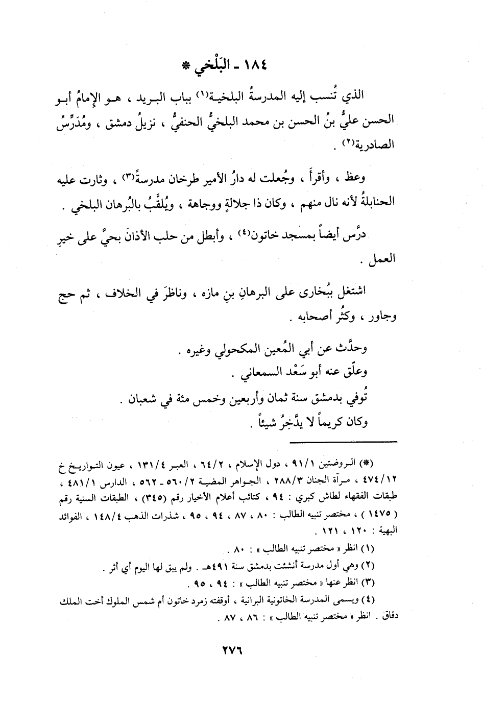 184 - البَلْخِيُّ أَبُو الحَسَنِ عَلِيُّ بنُ الحَسَنِ بنِ مُحَمَّدٍ *