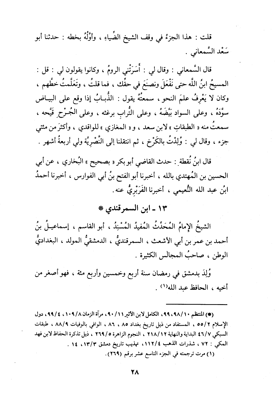 قُلْتُ: هَذَا الجُزْءُ فِي وَقْفِ الشَّيْخِ الضِّيَاء، وَأَوّلُهُ بخطِّهِ: حَدَّثَنَا أَبُو سَعْدٍ السَّمْعَانِيُّ.