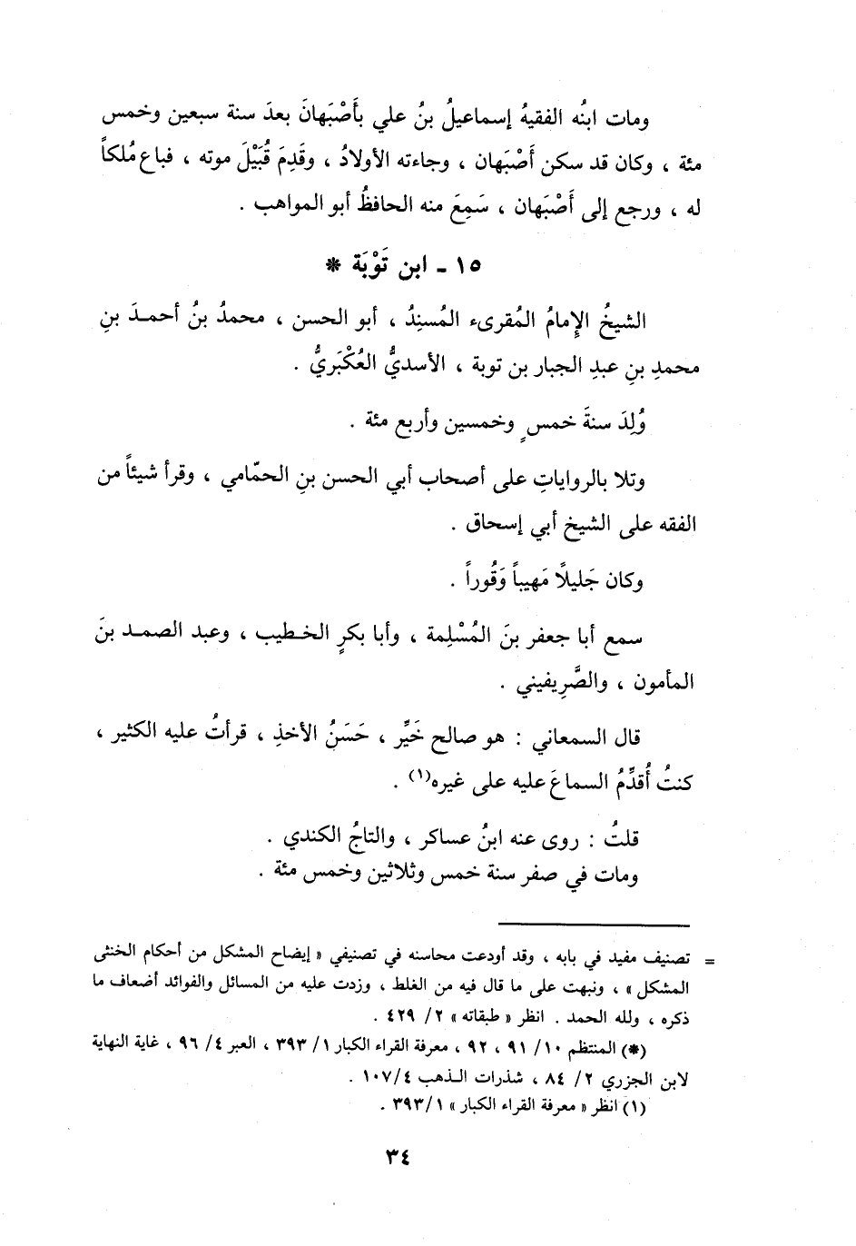 (*) المنتظم 10 / 91، 92، معرفة القراء الكبار 1 / 393، العبر 4 / 96، غاية النهاية لابن الجزري 2 / 84، شذرات الذهب 4 / 107.