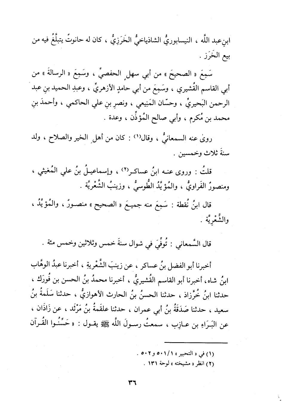 بنِ عَبْدِ اللهِ النَّيْسَابُوْرِيُّ، الشَّاذْيَاخِيُّ، الخَرَزِيُّ.
