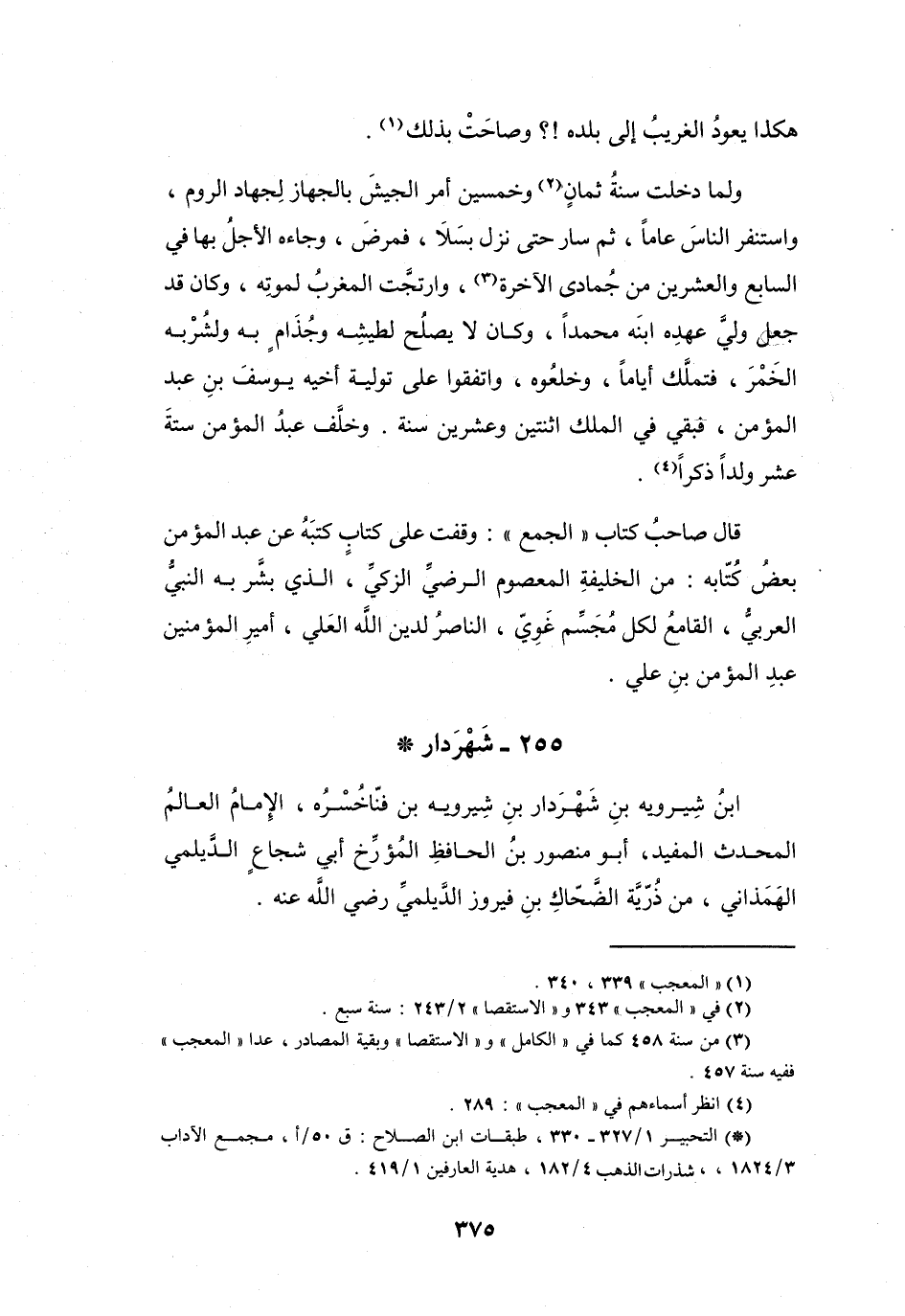 255 - شَهْرَدَارُ* بنُ شِيْرَوَيْه بنِ شَهْرَدَارَ بنِ شِيْرَوَيْه بنِ فَنَّاخُسْرُه الدَّيْلَمِيُّ