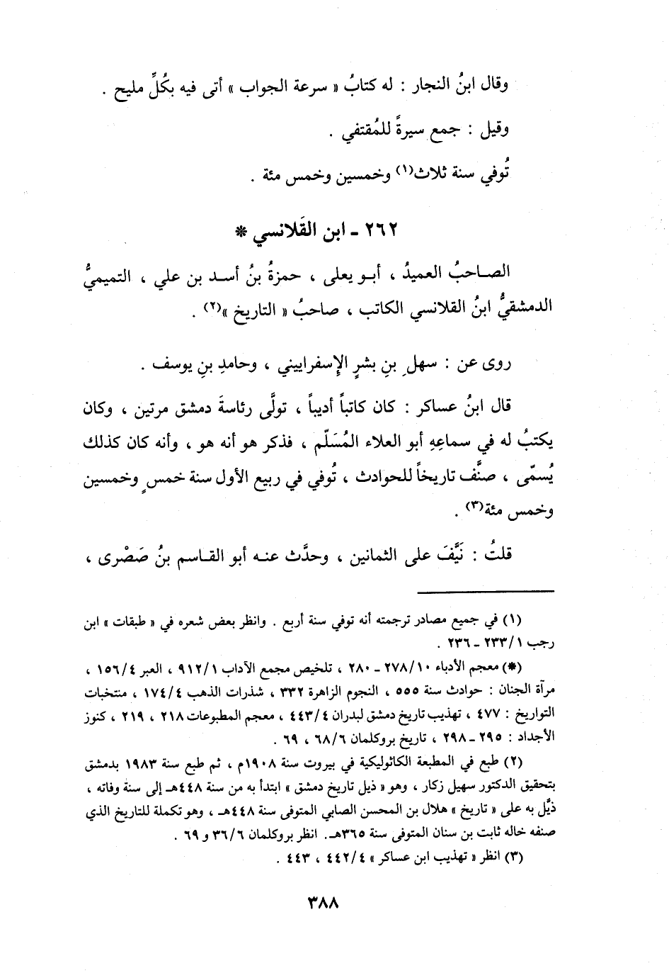 262 - ابْنُ القَلاَنسِيِّ حَمْزَةُ بنُ أَسَدِ بنِ عَلِيٍّ التَّمِيْمِيُّ *